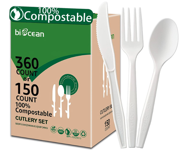 BIOCEAN 100% Compostable No Plastic Knives Forks Spoons Utensils, The Heavyweight Heavy Duty Flatware is Eco Friendly Products for Lounge Party Wedding BBQ Picnic Camping.