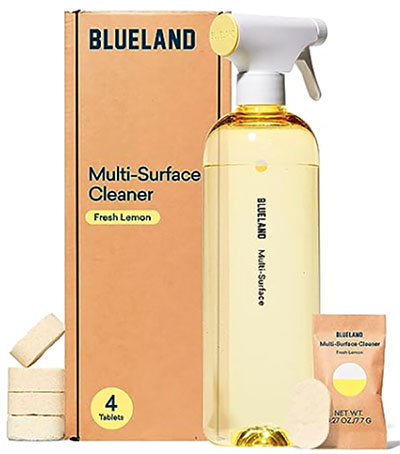 BLUELAND Multi-surface All Purpose Cleaning Spray Bottle with 4 Refill Tablets | Eco Friendly Products & Cleaning Supplies – Fresh Lemon Scent | Makes 4 x 24 Fl oz Bottles (96 Fl oz total)