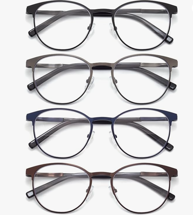 4-Pack Round Metal Frame Blue Light Blocking Reading Glasses for Women Men Spring Hinge Readers Anti Eye Strain