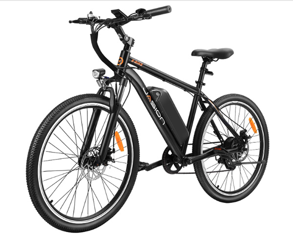 Jasion EB5 Electric Bike for Adults with 360Wh Removable Battery, 40Miles 20MPH Commuting Electric Mountain Bike with 350W Brushless Motor, 7 Speed Gear, 26″ Tires and Front Fork Suspension