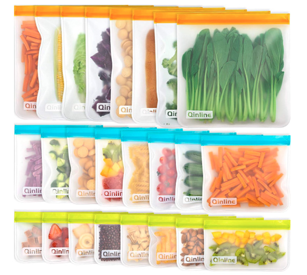 Qinline Reusable Food Storage Bags – 24 Pack BPA FREE Freezer Bags(8 Reusable Gallon Bags + 8 Leakproof Reusable Sandwich Bags + 8 Food Grade Snack Bags) EXTRA THICK Reusbale Lunch Bag for Salad Fruit