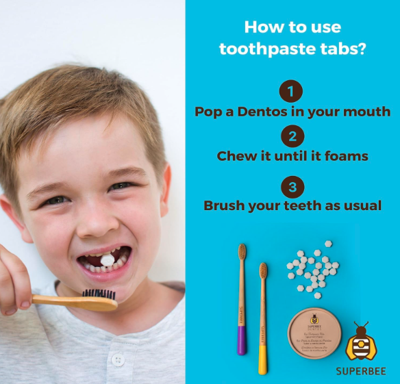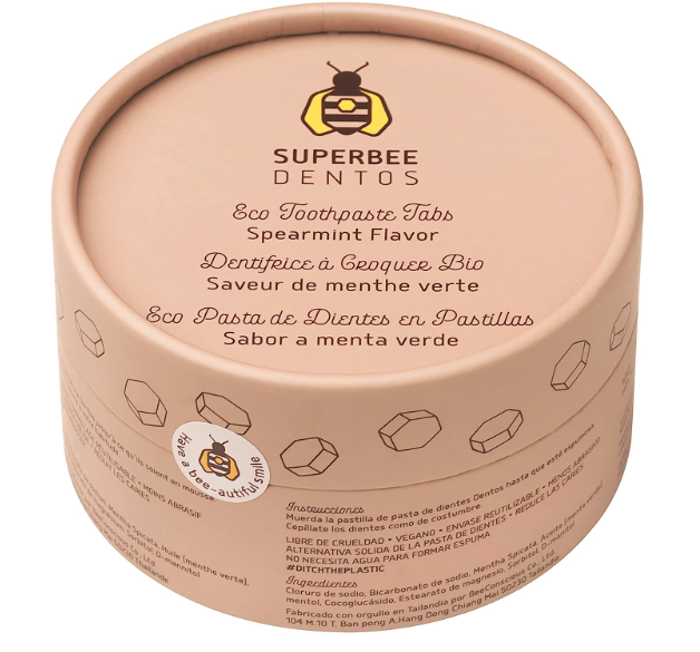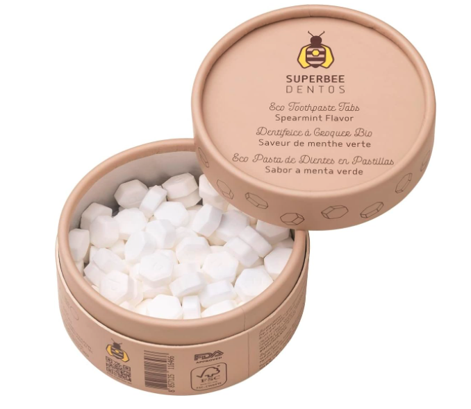 SuperBee Dentos Toothpaste Tablets, 150 Toothpaste Tabs, Fluoride Free & Eco Friendly, Travel Mouthwash Tablets, Sensitive Toothpaste Bites Kids Adults, Chewable Toothpaste Tablet, Spearmint